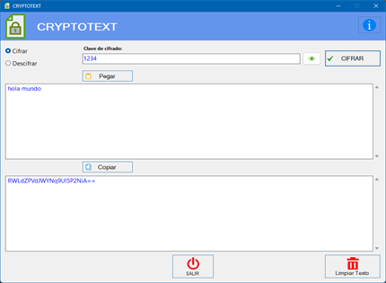 Programa con el que podrás cifrar y descifrar bloques de texto. Se han añadido botones, para facilitar el uso, mediante las funciones de pegar y copiar el resultado.