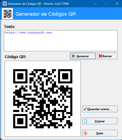 Programa para generar códigos QR, a partir de un texto. Una vez generado podrás guardar la imagen creada, para su uso.