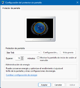Salvapantallas animado basado en el escudo de la Federación de Planetas de Star Trek.